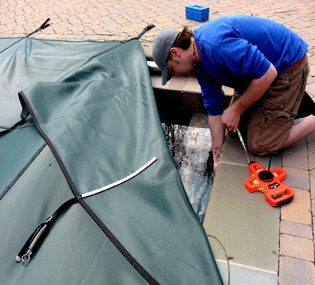 1. Check the water level to make sure it’s at the correct winter level. If water level is too high, we will pump it down to the correct level. This is very important for pools with solid covers, automatic covers, mesh covers, as well as uncovered pools.